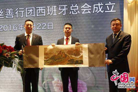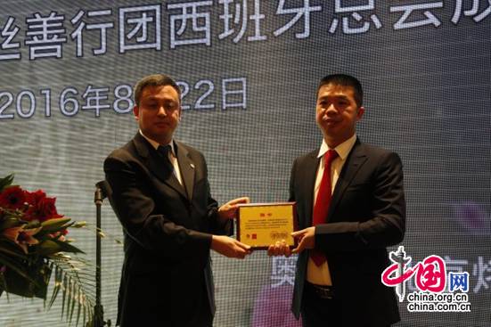 中国驻巴塞罗那总领馆唐凌云副总领事也出席了的当天的成立仪式,她在致辞中简单介绍了近几年来,侨界在慈善义捐、公益发展方面做出的成就,并代表总领馆对西班牙钢丝善行团的成立表示祝贺。她以女排此次赢得奥运冠军的精神寄言西班牙钢丝善行团的成立“多付出而不求回报,在侨联的指导下、会长的带领下贡献爱心和力量!”成立仪式上,中国侨联外联部副部长李涛先生、中国侨联办公厅巡视员李舰舶先生专门向首任会长胡向阳先生颁发了聘书并赠予了礼物。