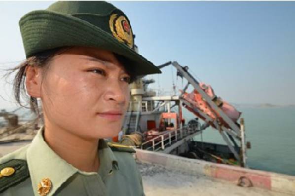 40度高温下,福建莆田边检站90后女警方晔骅坚守执勤岗位。