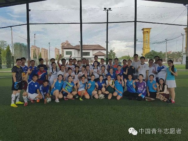志愿者与老挝青年一起踢足球,增进感情