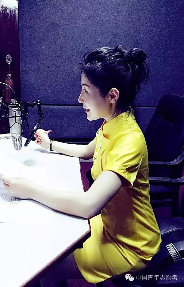 志愿者陈欣晖在老挝国家电台开展志愿服务,传播标准的中国好声音