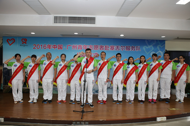 会上,王明学副部长和李小兵院长共同为2016年广州援塞志愿者佩戴绶带,各承办单位领导为2016年广州援塞志愿者配发服务保障工具包。会上,第七批援塞舌尔项目志愿者集体宣誓,表示将不辱使命,奉行“奉献、友爱、互助、进步”的志愿精神,圆满完成一年志愿服务工作。