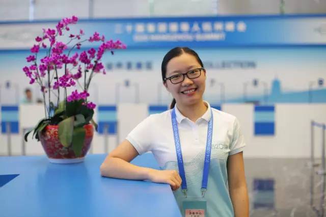 浙江越秀外国语学院王燕,20岁,英语专业,B20志愿服务大队,洲际酒店(B20峰会会议主会场)与会记者引导