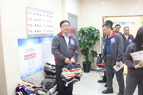 中央国家机关精神文明建设协调领导小组副组长、驻京办事处与综合管理司司长赵青山(左一)参与“一张纸献爱心行动”。