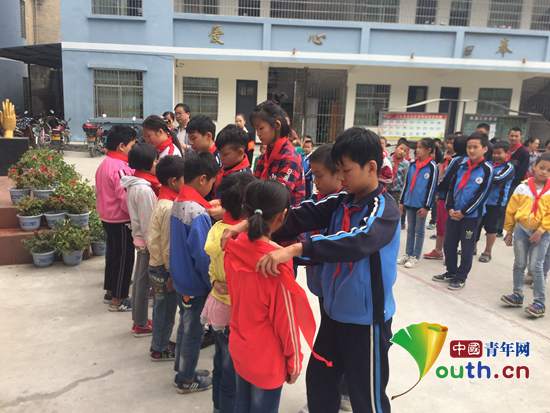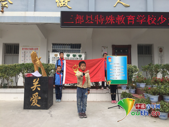 中国青年网北京10月20日电(记者张思怡通讯员陆璐)近日,为引导学生继承和弘扬少先队的光荣传统,增强少先队员的光荣感和自豪感,贵州省三都水族自治县特殊教育学校举行了少先队建队日庆祝活动。武汉理工大学研究生支教团三都服务队队员全程参与了活动的筹备,为活动的开展增添了不一样的色彩。