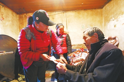经常靠步行为困难户去送物资