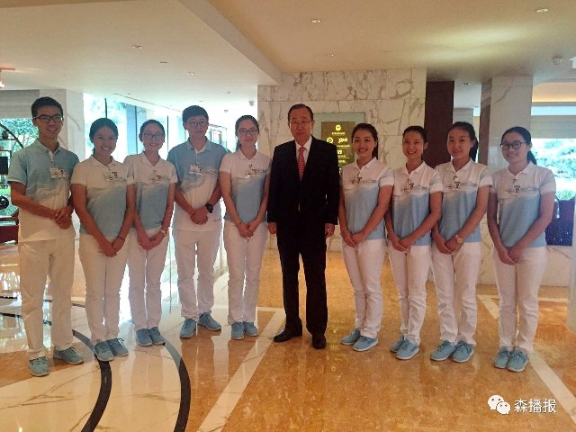 2016年9月6日黄龙饭店浙江外国语学院“小青荷”与联合国秘书长潘基文影