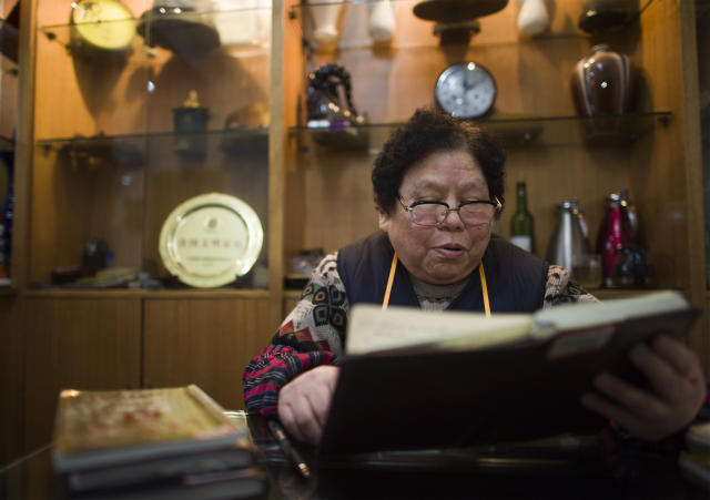 余洪芝在翻看志愿者工作日记。图片来源:新华社