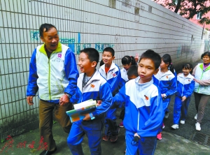 “稻草人”志愿者朱伯表示,“稻草人”志愿服务队伍的一个重要任务是护送上下学途中的小学生,特别是没有大人接送的孩子们,通过把守主要路段以及在市场、车站等人流量多的地方巡逻,保护孩子们的安全。“有些路段人车混行严重,我们一般至少有四个老人严守队伍首尾和两侧,不允许任何一个孩子掉队。”