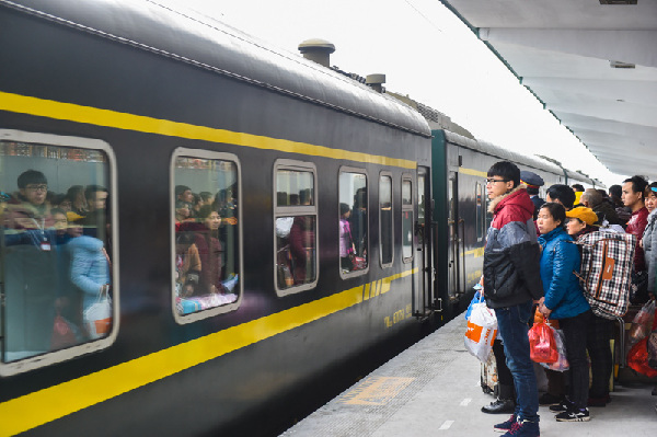 1月8日,回乡过年的外来务工人员在余姚火车站准备乘坐K848次列车回家过年。该趟列车由宁波发车,开往贵阳,全程26个小时,是外来务工人员回乡过年乘坐较多的车次。