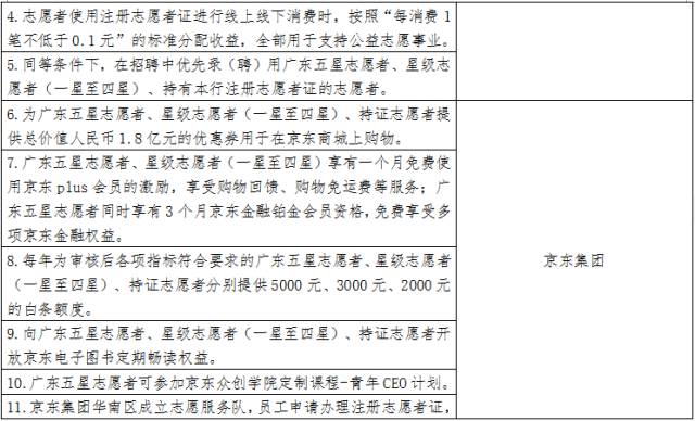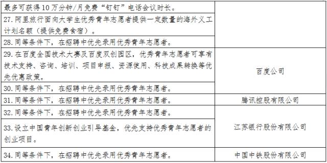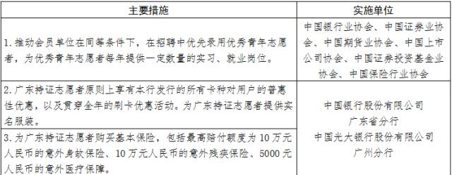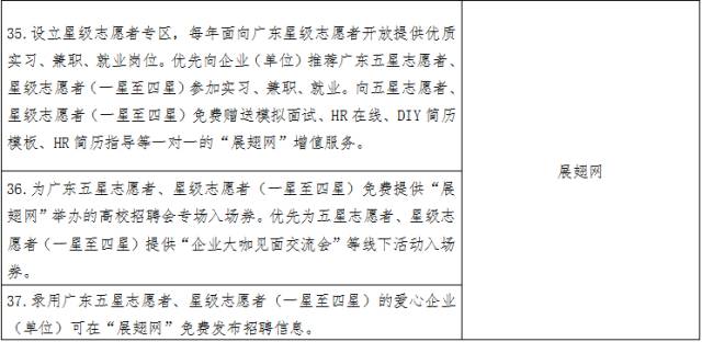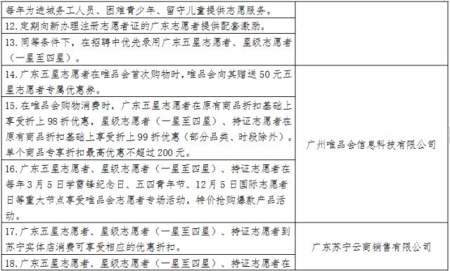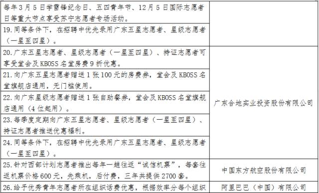 相关企事业单位和社会组织针对广东志愿者提供的激励措施清单