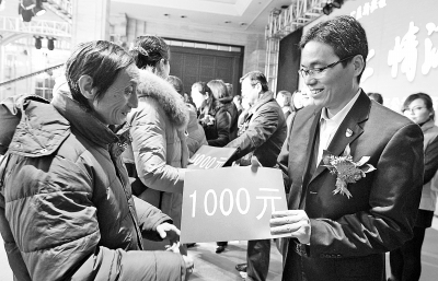 昨天上午,“温暖二七·情满淮河”暨淮河路街道办事处2017年社会服务项目发布会上,领到1000元慰问金后,55岁的崔伟华等受助群众,将心头温暖化作微笑。