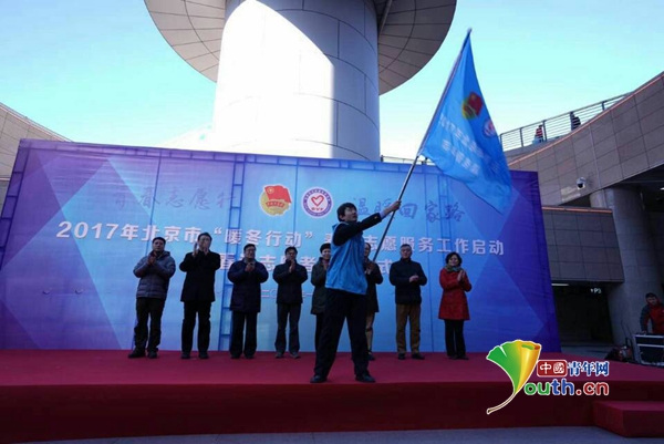 2017年北京市“暖冬行动”春运志愿服务工作启动暨春运志愿者上岗仪式在北京西站举行。