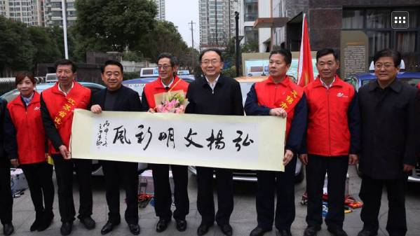 省委常委、市委书记李小敏,副省长陈震宁一行走访慰问全国最美志愿者李展及其所在的无锡志愿者爱心车队。