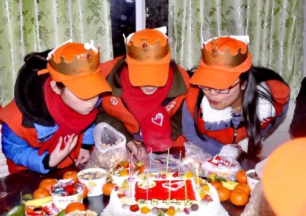 春运志愿者李佳琴、周娟和程月在南充车站志愿者之家举行的“春运志愿者集体生日联欢会”上度过了一次格外暖心的生日。