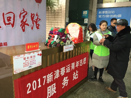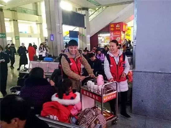 春运期间,志愿者牺牲了自己的假期,坚守在大家的回家路上,为南来北往的旅客提供温馨的服务。