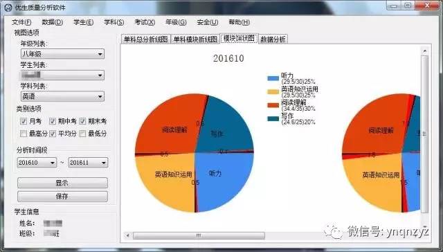 “新途”基于SQL数据库,以C#语言完成,实现局域网内远程连接使用,具有直观方便和灵活自由两大特点。软件的一大特点是直观和方便。目前以优秀学生为主要统计对象,可以跟踪记录学生每次考试的学科成绩及各学科各模块的得失分情况,并生成对应的折线图和扇形统计图等图表。折线图可以直观地看出学生成绩的变化趋势,饼图可以直观地看出该学生在哪个学科的哪个版块失分较严重,在统计了多次考试大量数据之后,能够对该学生的学习情况以及薄弱环节进行科学的评估。“用数据说话”也是李校长在构想该软件时的一个核心思路,有了大量的数据分析作为依据,各学科教研组也能更好地掌握学生的学习状况,并制定相应的教学计划。