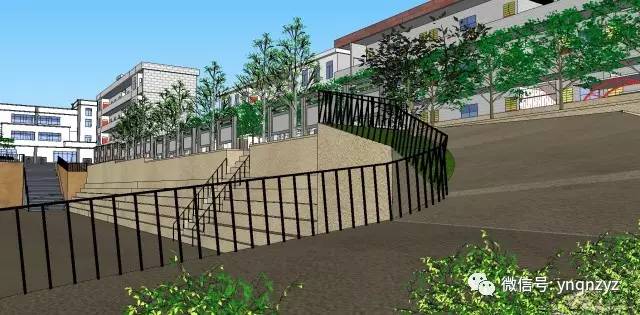 刚建成的挡墙及钢架楼梯效果图