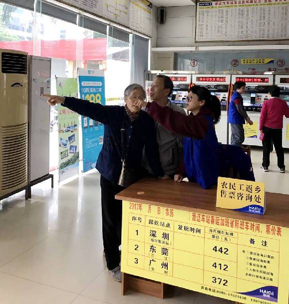 为做好春运志愿服务工作,保证以农民工、在外务工人员为重点的返乡及出行旅客提供帮助,确保广大旅客在春运期间能够安全、顺利的回家及安全出行。春运期间,团乐东县委组织志愿者前往乐东车站进行“青春暖流”—热心暖寒冬,温暖风随行”活动。设立重点旅客流动志愿服务网点,为旅客提供问询向导、秩序维护、协助安检、行李帮提、老弱帮扶等常规服务,为重点旅客提供导购、导乘、轮椅等一条龙服务。为预约“帮帮盲”服务的盲人旅客提供“站到家”、“家到站”服务。