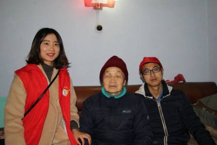 这些老人年轻时也都曾奋斗在各个不同的岗位,他们中有职工,有军人,还有教师,为社会辛苦了一辈子。而今,他们走路困难了,甚至卧病在床不能自理,社会没有忘掉他们,志愿者们为他们传递爱心,向他们表达慰问之情,在新春来临之际献上最真挚的祝福。看到老人行动不便,生活不能自理时,所有志愿者们都积极的为他们清洁了房间卫生,为他们按摩,亲切地与他们交谈,老人们对志愿者的到来,无不充满了喜悦之情,有的老人还特意去换了好看的衣服,整个屋子处处洋溢着欢快的气息。