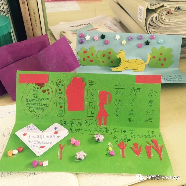教师节前,收到了小朋友亲自制作的贺卡.五颜六色的纸片,各式各样.