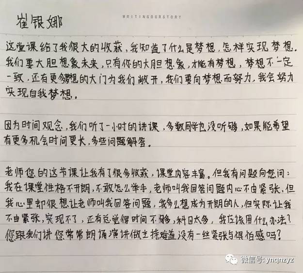 例如第一期嘉宾,世界500强国企人力资源主任王蕊老师向同学们介绍其从小的学习感悟及大学毕业后就业创业经历,通过生动形象的“阿拉丁神灯”等例子,教孩子们怎样寻找确定自己的梦想,怎样把梦想落地生根在现实中。课堂上,孩子们也在分享着自己的兴趣爱好,期待如何把兴趣变成能力,创造价值。课后,许多学生表示获益匪浅、备受鼓舞。