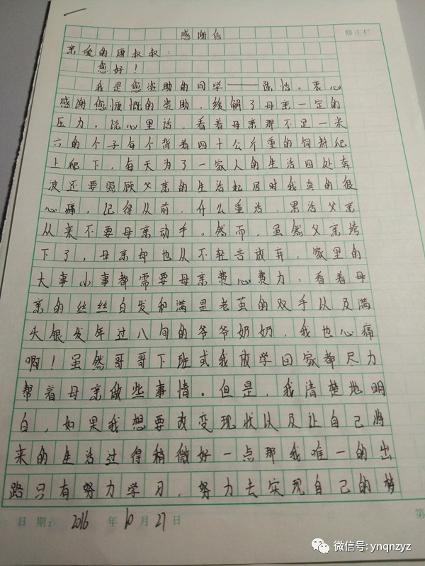 孩子们虽然家境较为贫困,但是普遍成绩优异,学习刻苦,有自己的学习目标与理想。同学们通过感谢信与视频的方式,对资助的爱心人士表示感谢。有同学说,将来要做一位老师,教育更多的孩子。有同学说,要用更好的成绩来汇报资助的叔叔阿姨的关心。也有很多同学都表示将来学业有成,也一定把这份爱心传递下去,去帮助更多需要帮助的孩子。