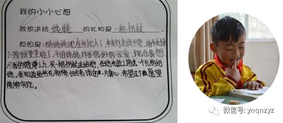 他会心疼因为年老而行走不便的姥姥,希望要一根拐杖让姥姥可以不再摔跤,一个小小的拐杖代表了孙子的一片真心