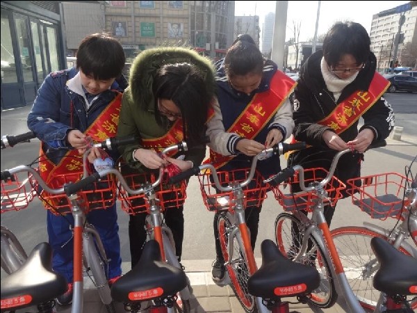 然而济南十九中学的几位中学生团干部在体验共享单车的同时,却发现了一些乱停乱放、故意损坏等不和谐的现象。共享单车的亮点在于“共享”二字,它既意味着资源的共享,也意味着文明的共担,共享单车不仅能给大家带来方便,同时也反映着大家的文明素养。