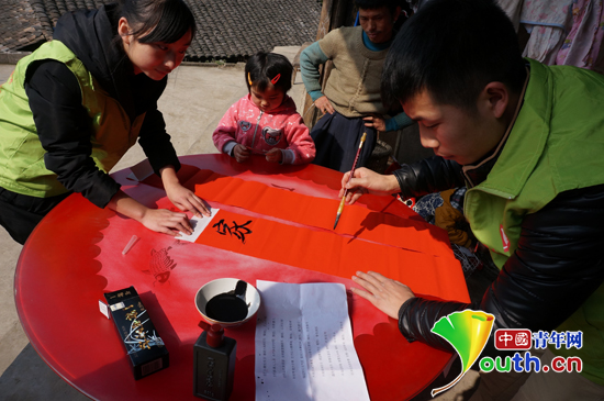 思南县志愿者游世广为村民书写春联。游世广 供图