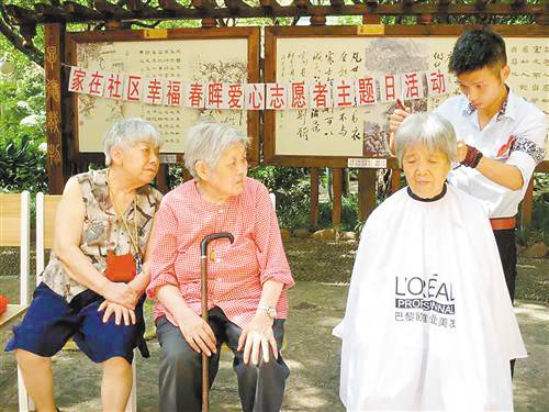 志愿理发师每月固定为老人理发。记者 张莎 摄