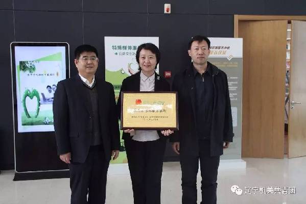 团省委书记赵红巍为省图书馆颁授“辽宁省共青团志愿服务基地”牌匾。