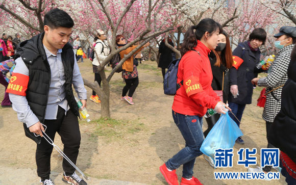 鼓楼区教体局组织100多名青年志愿者轮流在园区开展文明劝导,制止不文明行为,向有需求的游客发放垃圾袋。丰财、环城、琵琶街道的数百名志愿者穿梭在游客之间,按照划分区域捡拾、清扫游客的丢弃物,用生动的实践来诠释着雷锋精神,成为一道靓丽的风景线,让人们感到整个梅园处处都有雷锋。