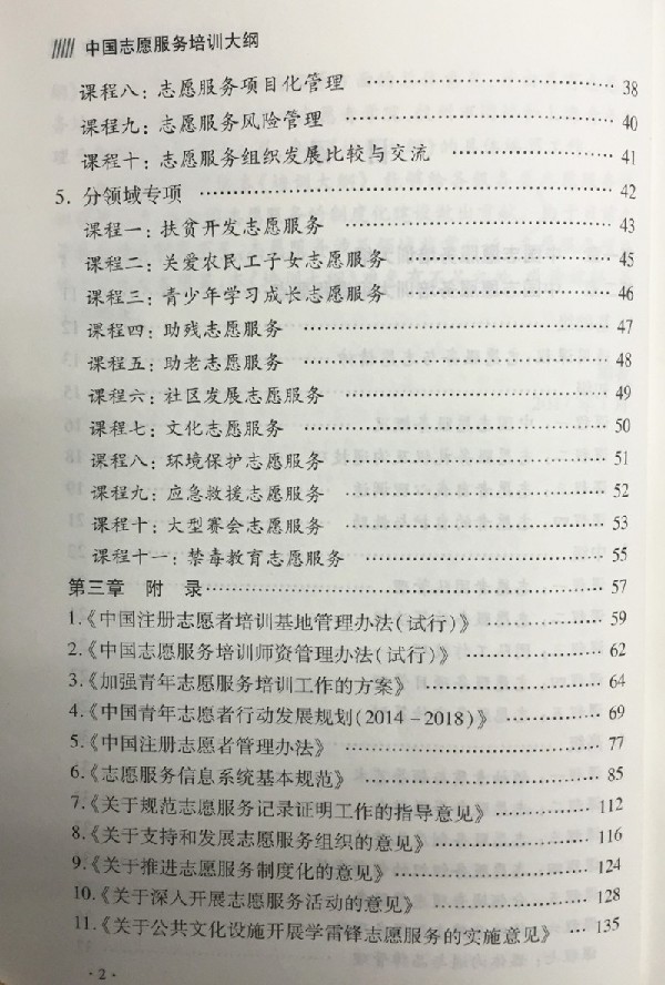 我们期望通过这本《培训大纲》,能够给各级各类志愿服务培训带来参考,为全国志愿服务的制度化建设做出贡献。