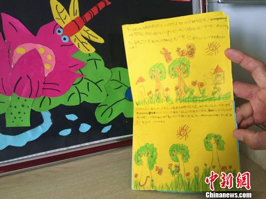 学生自己创作的故事绘本和手工作品。 刘着之 摄
