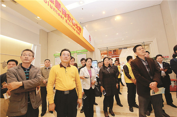 昨日,全省学雷锋志愿服务工作座谈会代表参观市志愿服务联合会,纷纷点赞。 《惠州日报》记者钟畅新 摄