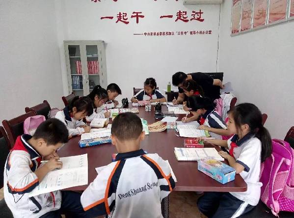 “4:30课堂,志愿者和认真学习的小朋友。”
