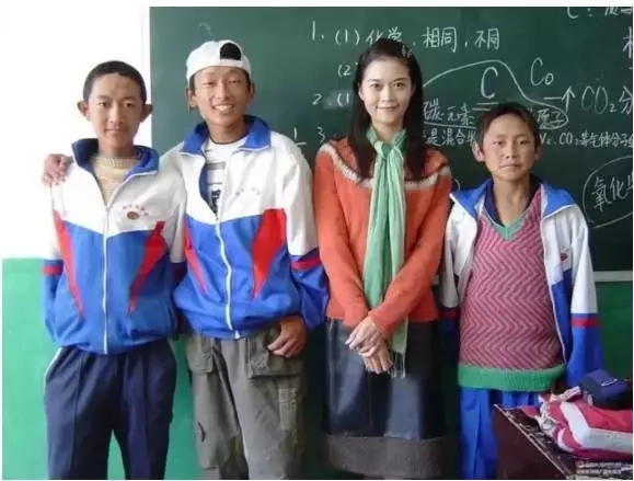▲韦慧晓与藏族孩子在一起。(资料图)