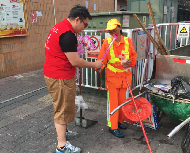 “阿姨,你们辛苦了,送您一束康乃馨,祝您母亲节快乐!”5月14日,环卫工人张阿姨第一次收到鲜花礼物——康乃馨。母亲节当天,在爱心企业深圳红马甲投资发展有限公司的赞助支持下,深圳市宝安区绿宝宝垃圾分类指导中心志愿者共为30多名环卫工人送去鲜花康乃馨和节日慰问。身穿红马甲的绿宝宝志愿者来到翻身路附近,为还在辛勤劳动的环卫阿姨们送上节日惊喜。