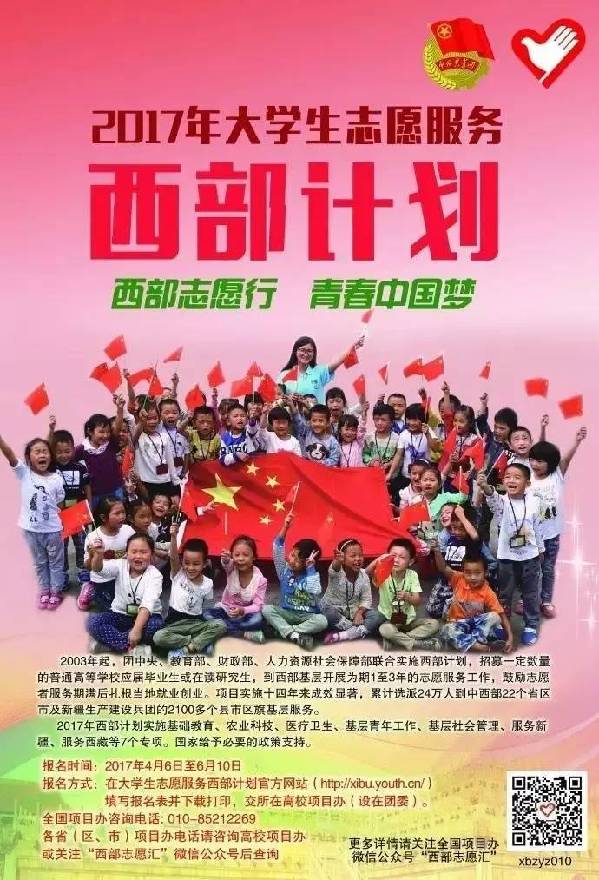 有志青年报名攻略:登录西部计划官方网站(http://xibu.youth.cn/)填写报名表并下载打印,交所在高校项目办(设在团委)。要及时关注西部计划全国项目办的微信公众号“西部志愿汇”以及所在高校的宣讲活动信息哦,小编相信青年志愿者们的西部故事一定会让你们感触多多的!