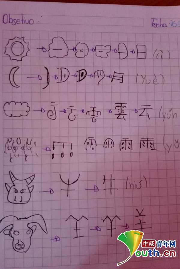 胡宏姣的智利学生写的汉字。胡宏姣供图