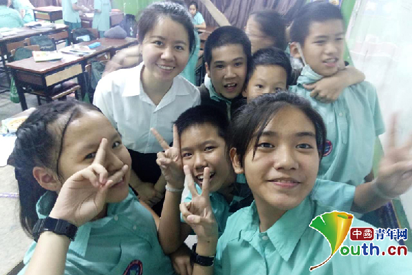 和郭妍一样,谢燕也是湖南师范大学2015级国际汉语教育专业的硕士研究生,也曾去国外做过志愿者,不过,她去的国家是有“千佛之国”之称的泰国。