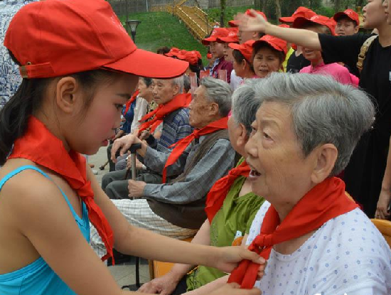 人民网成都5月31日电 (王波)5月31日,六一国际儿童节前夕,孩子们都在以各种各样的方式庆祝着自己的节日,而成都市慢性病医院的近百位老人们也收到了一份特殊的节日祝福:几十名中小学校的孩子们为老人献上红领巾,并表演了充满童趣的节目。