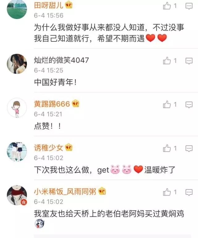 网友们纷纷留言表示自己被这个点外卖的小伙暖到了: