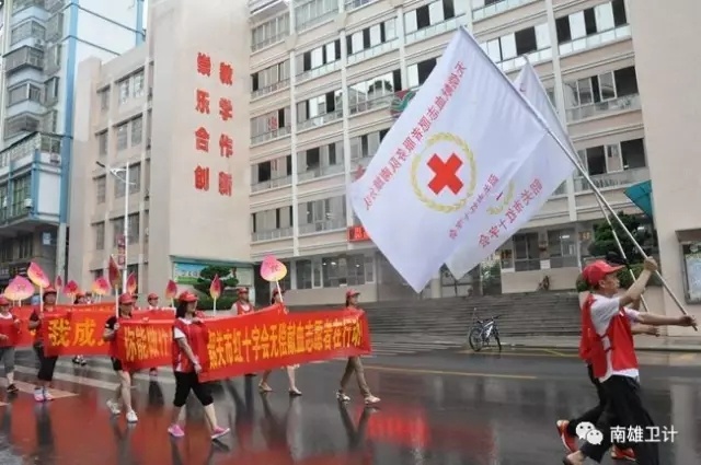 6月14日,为庆祝第14个“世界献血者日”,当天,韶关市卫计局组织市红十字会、市献血办在三影塔广场举办主题宣传活动。志愿者们热情地为市民讲解无偿献血科普知识,献血的好处及献血优先优惠用血政策,虽然天空下着雨,但仍然阻挡不了志愿者们走向街头宣传无偿献血的热情。