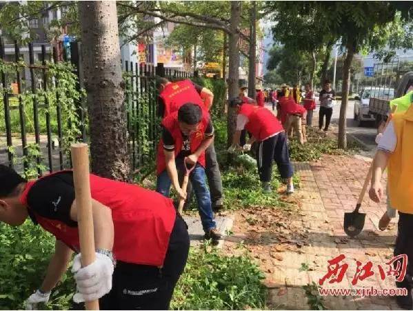 6月11日早上,肇庆市人大、市委宣传部、西江日报、端州法院等单位联合组织了近百名创文志愿者开展活动。当天上午,各部门近百名志愿者,身穿着志愿者马甲,手拿工具,迅速行动,分工明确,相互协作,在太和北路上清垃圾、除淤泥、除杂草。