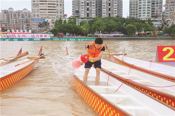 17~18日,2017年中华龙舟大赛 (广东·惠州站)暨第六届惠州国际龙舟邀请赛在惠城区下埔滨江公园段西枝江江面举行。据悉,中华龙舟大赛是国内最顶级的龙舟赛事,广大市民在欣赏江面上上演的一幕幕 “速度与激情”的时候,也留意到了赛场上处处为赛事服务,身着“黄马甲”的志愿者们。他们冒雨顶晒,坚守岗位,服务周到,热情有礼,传递着文明和爱心,赢得央视工作人员、裁判教练、运动员及观众的一致好评。