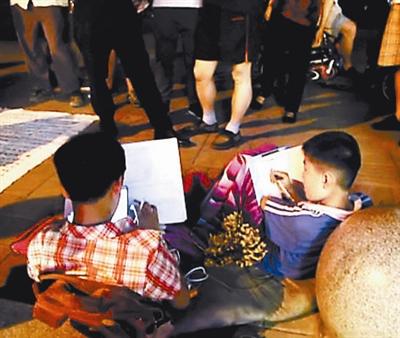 网友拍摄的视频显示,在河南平顶山街头,一个小男孩和一个小女孩坐在人行道上,边做作业边玩手机游戏或是看视频。在小男孩的身旁有一张关于自己家庭的 “说明文章”,由自称是两个孩子爷爷的齐长见手写而成。齐长见称,自己儿子和儿媳均为智力障碍人士,他迫于生计带着两个孩子上街卖爆米花乞讨。