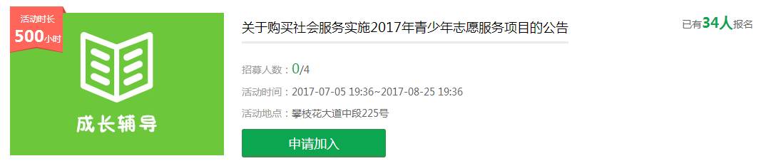 (二)项目申请。有意参与的社会公益组织、团队在2017年6月21日—6月27日18:00前直接向团区委申请(工作日上午08:30-11:45、下午15:00-18:00接受电话、邮件咨询,接收申报资料报送;双休日、节假日仅接收邮件咨询)。项目申报材料必须于项目申报周期内报送,逾期不再受理。