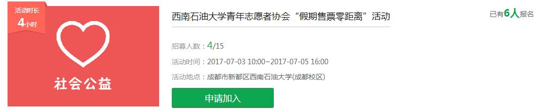 7月,西南石油大学的大学生们迎来了暑假,经过紧张的期末考试周之后,同学们可能要经过一番激烈的抢票才能买到回家的车票。为了方便学生购买车票,西南石油大学青年志愿者协会特联合新都客运枢纽站为在校大学生开展“假期售票零距离”活动