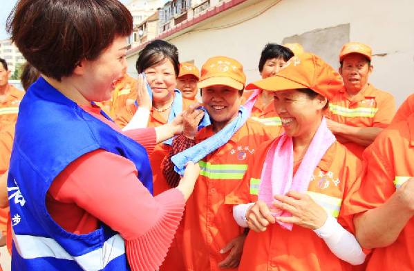 “没有共产党,就没有新中国,共产党辛劳为民族....”当环卫工于德玲从爱心志愿者手中接过毛巾时,她开心地在现场唱起了《没有共产党就没有新中国》。和于德玲一样心情的还有威海市环翠区773名环卫工人。